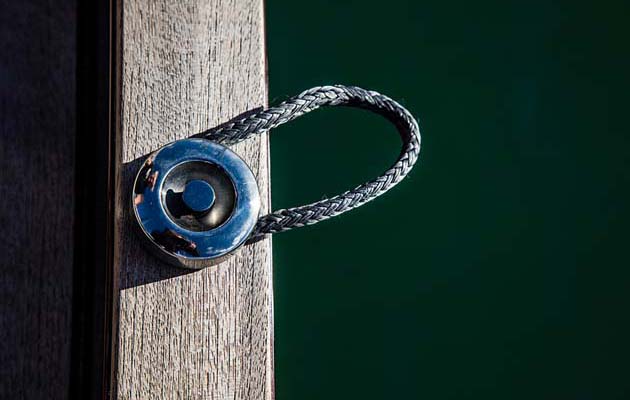 SeaSmart padeyes on the cap rail for hanging fenders. Push the central button (below) and these detach to be placed in alternative positions.