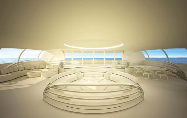 They developed the lines plan, built a model and produced a detailed and workable plan and renderings to illustrate the project. Obviously at this scale, an owner would be able to specify all sorts of luxury items for the deck and interior.
