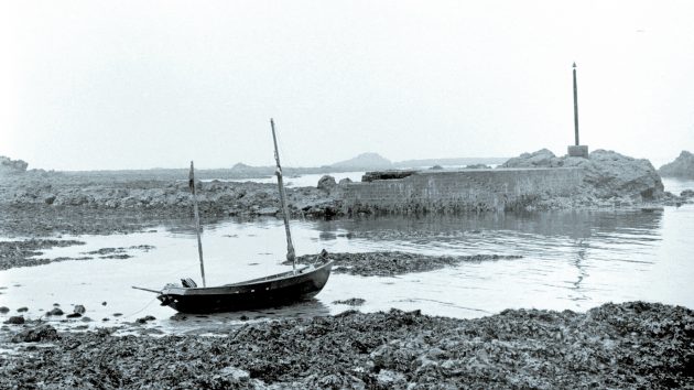 With rudder unshipped and the plate right up, we gingerly nosed round the end of the rocks, watching the seabed shallowing up until finally Lugworm hit bottom hard once, twice, then surged in over a ridge into a small pool only a foot or two deep.