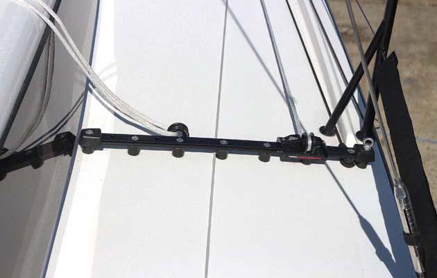 The transverse jib-sheet track enables the clew of the sail to be positioned in three dimensions with ease.