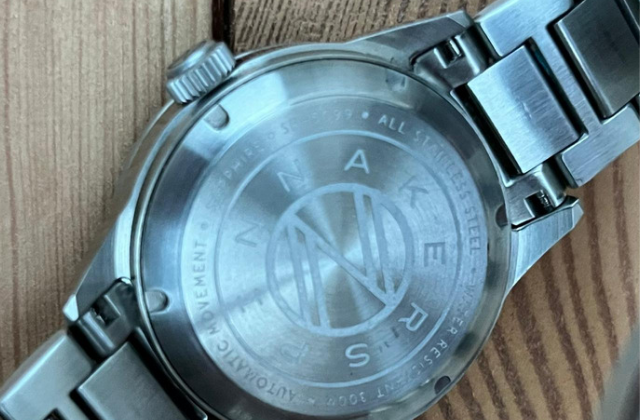 You’ll see that the back of the Spinnaker Hass automatic watch is more of a domed shape to allow space to house that self winding mechanism as well as the waterproofing. As with all things, there’s a tradeoff. If you want to go electric free and remain affordable to mere mortals then the mechanism to self wind will take up more space than say a battery powered quartz movement.