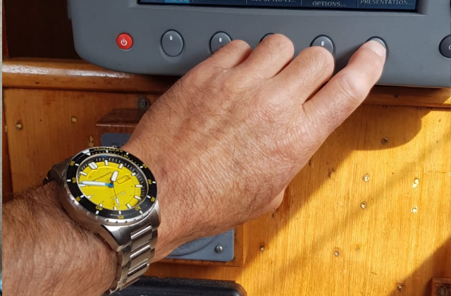 The passive glow in the dark of the hands and digits works well once powered up with a lamp or head torch. The day and date is useful for anyone scrolling through a tide book or making log book entries.