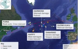 Mid-Atlantic rescue as Force 11 sinks one yacht sinks, others dismasted and damaged in OSTAR Race