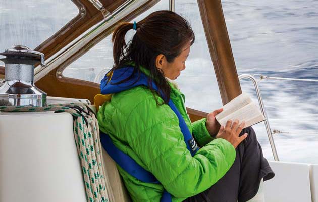 I recommend earmarking some places for privacy. In good weather the foredeck, otherwise the saloon, is our quiet place.